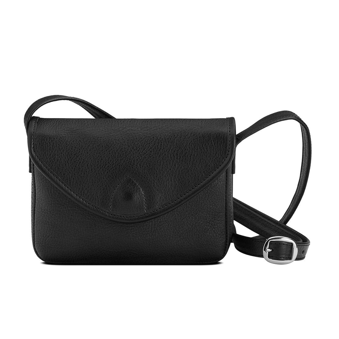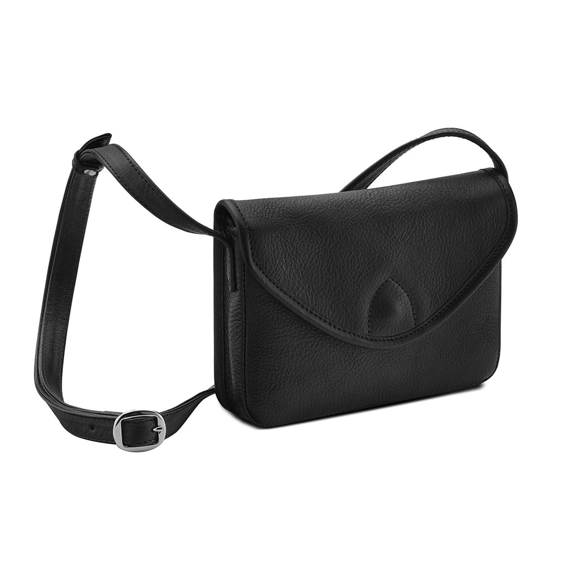 1 main compartment for mobile phone, wallet or various small items ∙ Can be closed with 1 magnetic fastener under the lid ∙ 1 leather strap adjustable in length with 1 metal buckle, 1.5 cm wide ∙ No lining material