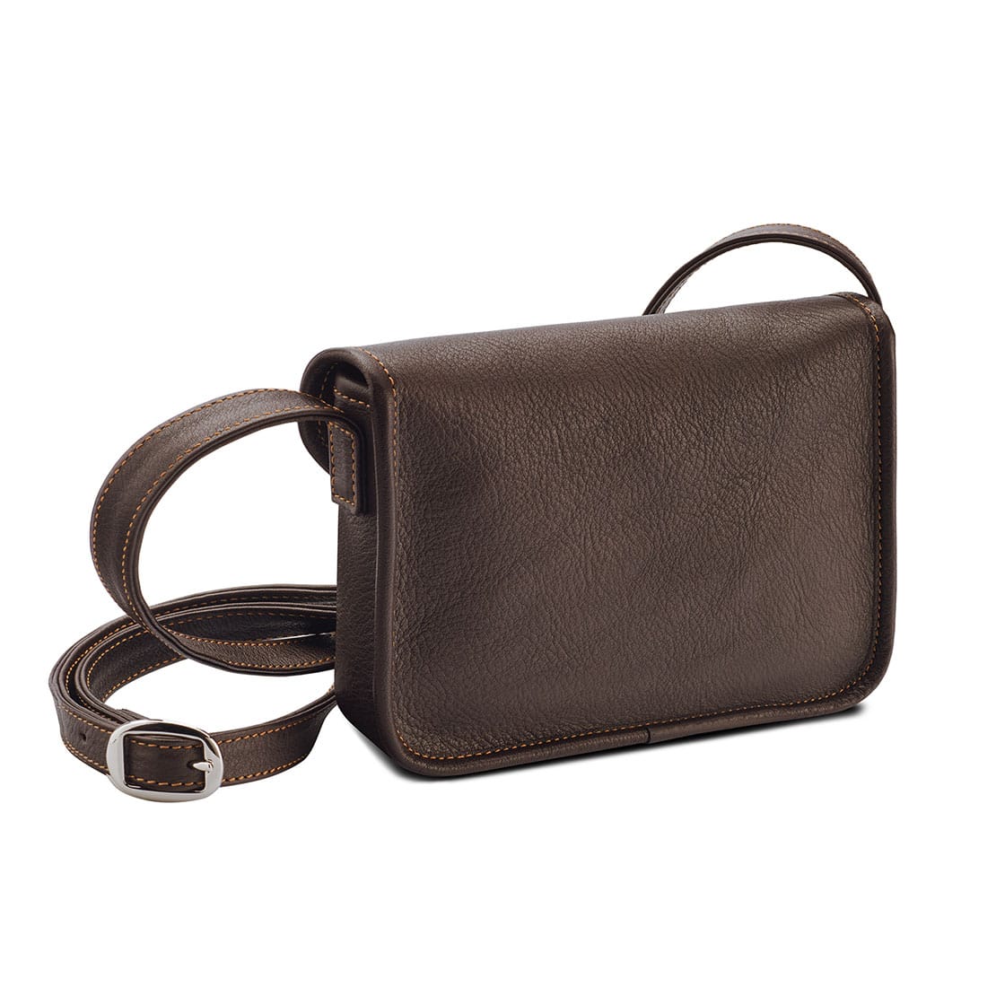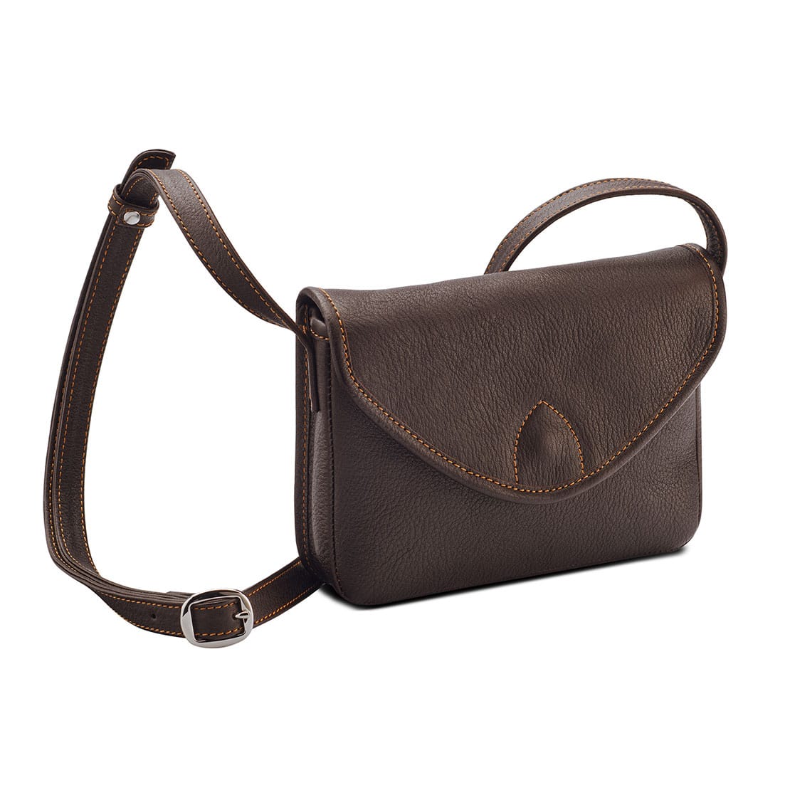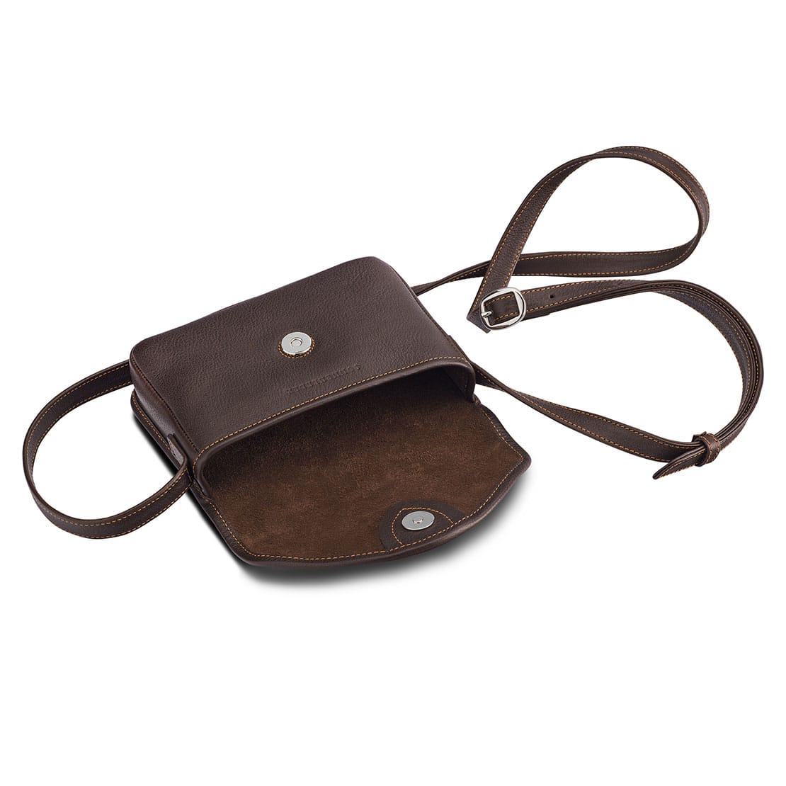 1 main compartment for mobile phone, wallet or various small items ∙ Can be closed with 1 magnetic fastener under the lid ∙ 1 leather strap adjustable in length with 1 metal buckle, 1.5 cm wide ∙ No lining material