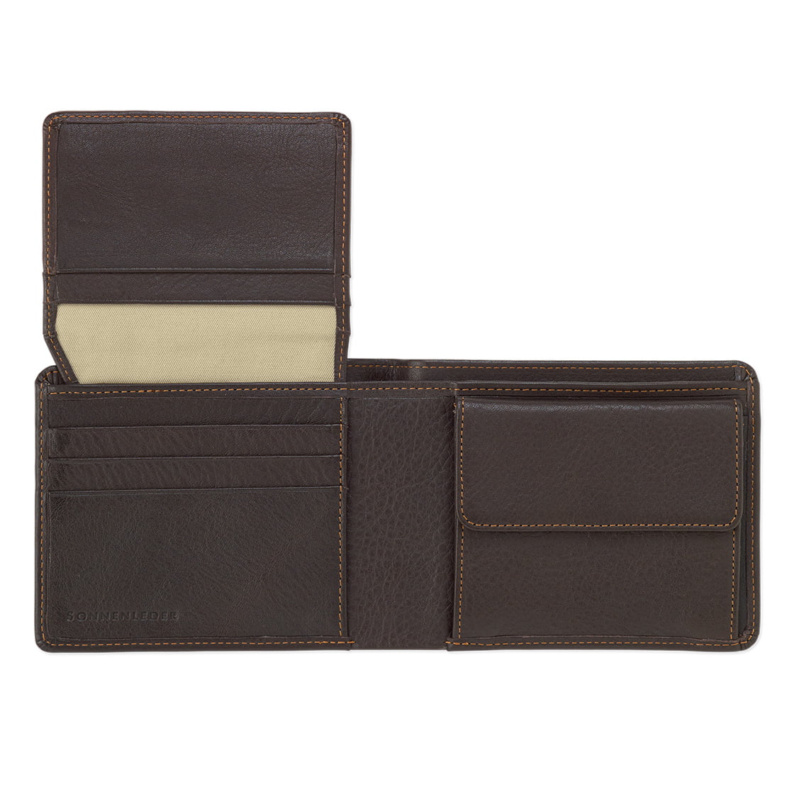 2 note compartments, 1 coin pouch, 2 slots for ID card, 8 credit card slots