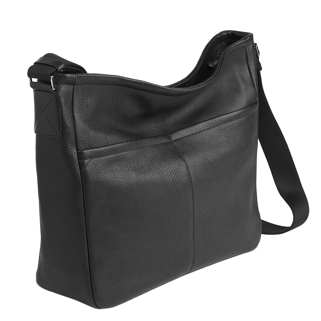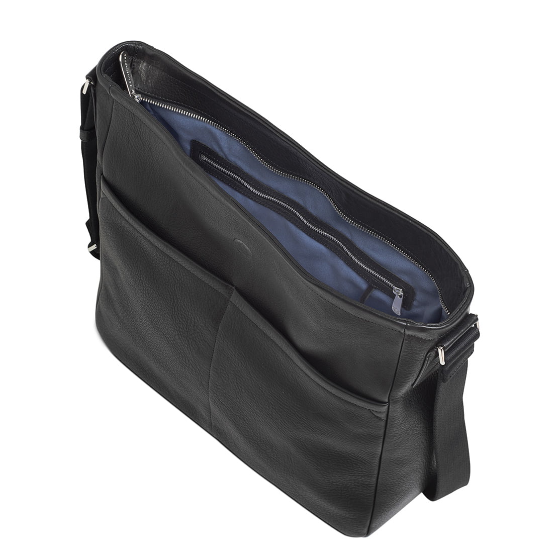 1 main compartment with 1 additional zipped compartment ∙ 3 pockets for phone, pens, purse ∙ 1 leather key leash with metal clip ∙ Zip top ∙ 2 outside front compartments ∙ Adjustable textile strap, 4 cm wide ∙ suitable for A4 documents