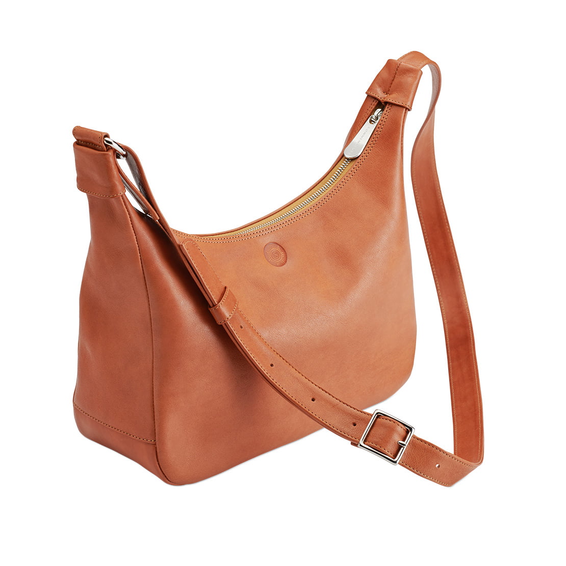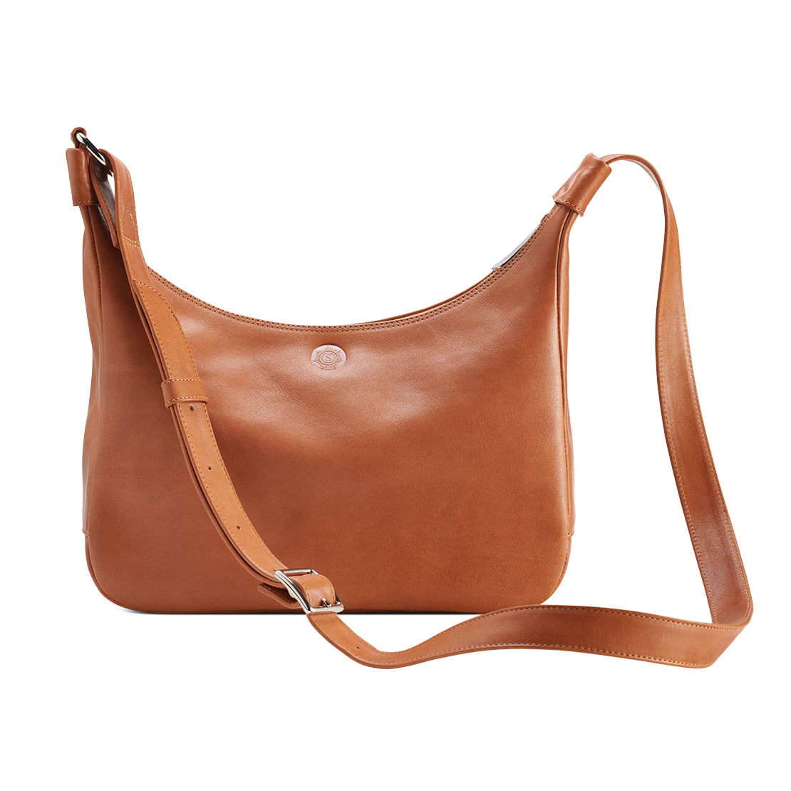 1 main compartment with 1 additional zipped compartment, 2 pockets for phone, pens, purse, Zip top, adjustable leather strap, 2,5 cm wide, suitable for A5 documents