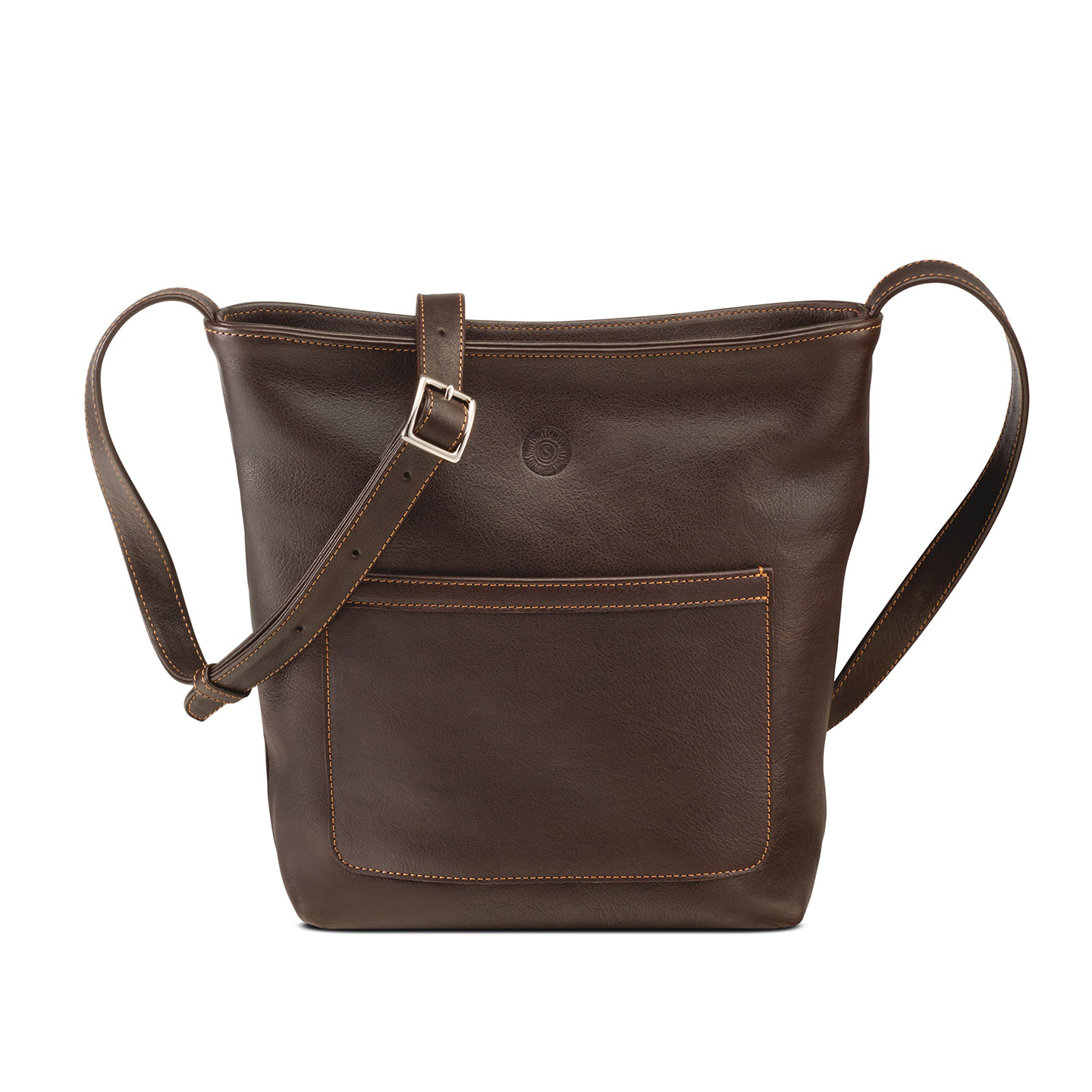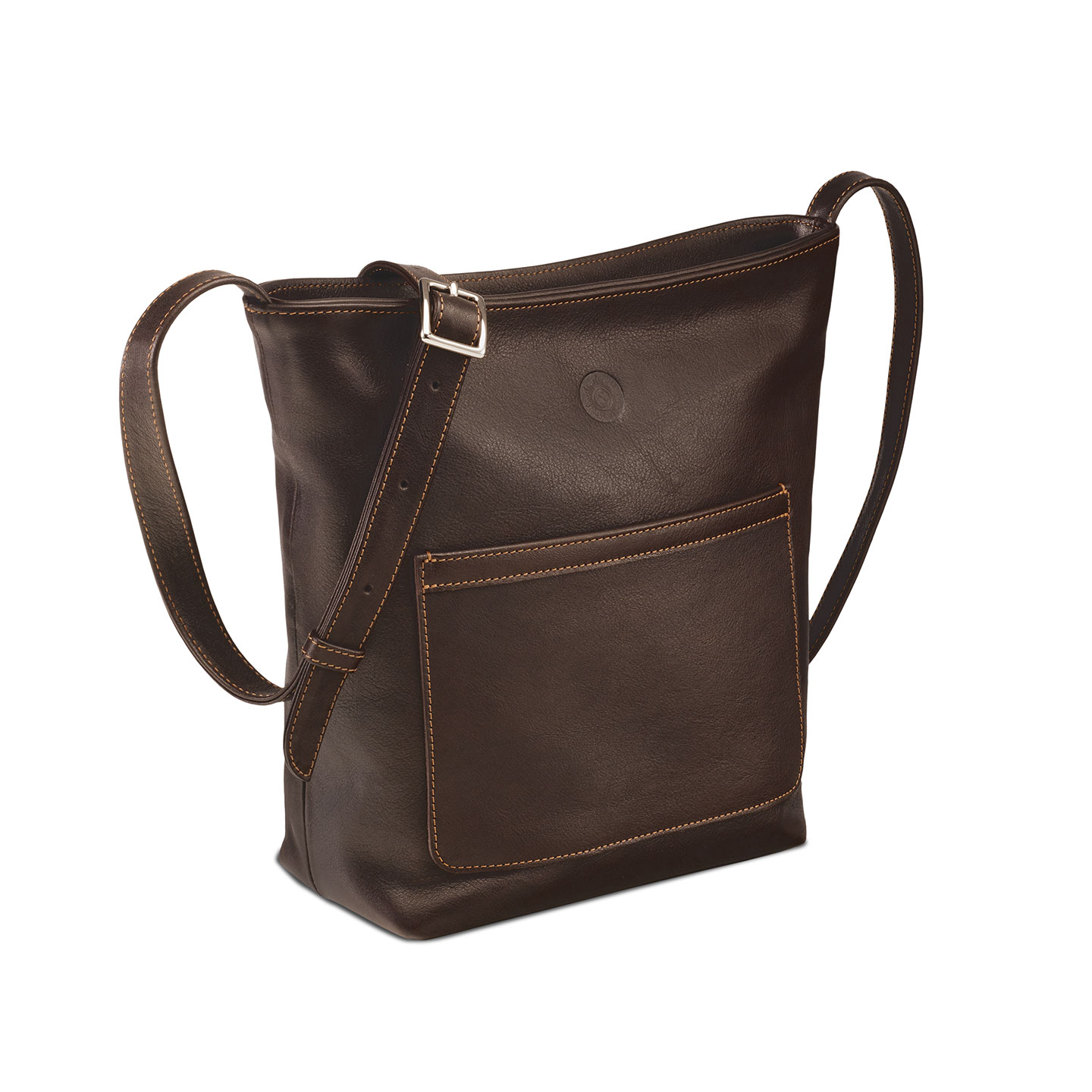 1 main compartment with 1 additional zipped compartment · 2 pockets for phone, pens, purse · 1 leather key leash with metal clip · Zip top · 1 front compartment · adjustable leather strap, 2 cm wide · Suitable for A5 documents
