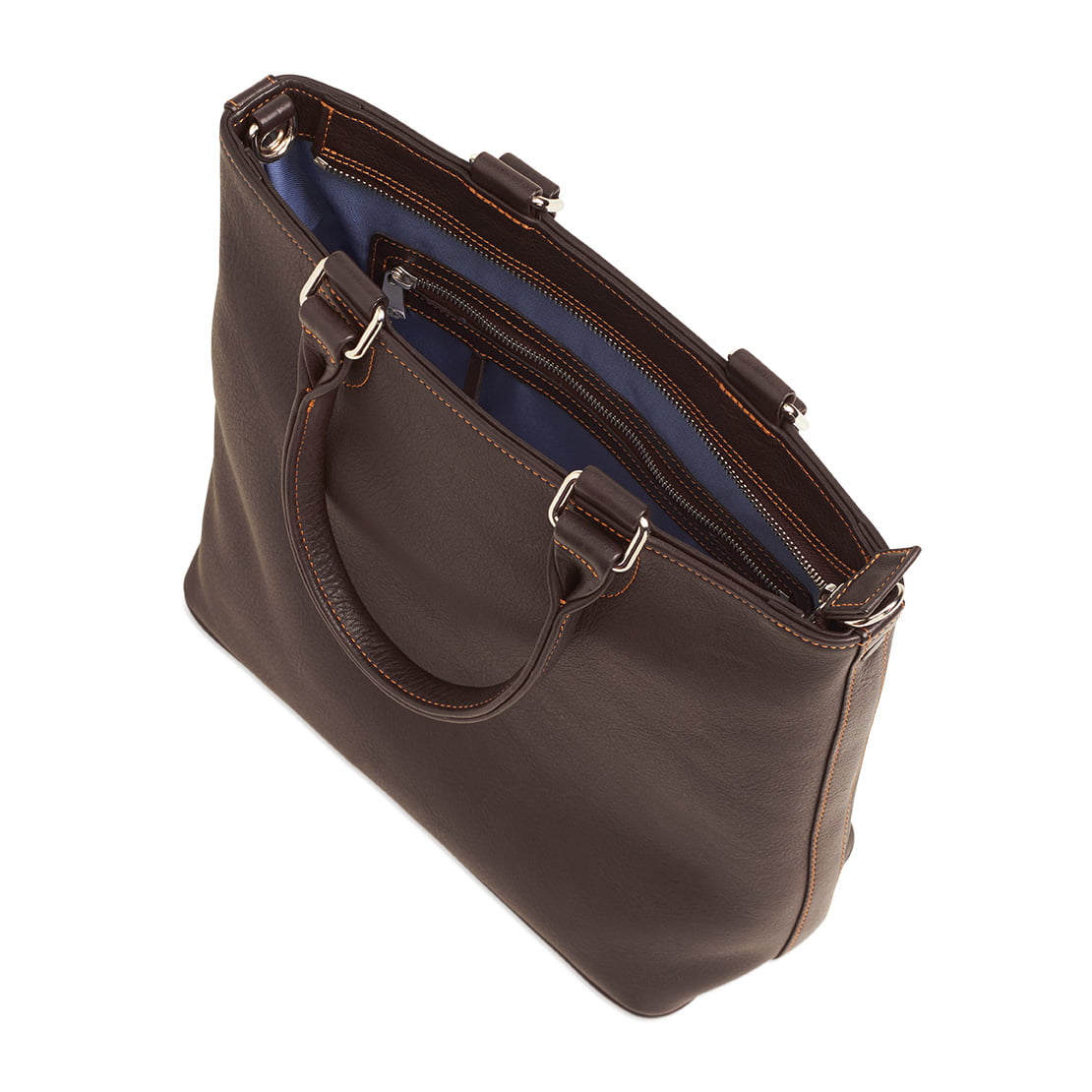1 Hauptfach mit 1 zusätzlichen Reißverschlussfach, 2 Steckfächern für Telefon, Stifte, Geldbörse ∙ 1 Schlüsselschlange aus Leder mit Metallkarabiner ∙ verschließbar durch 1 Reißverschluss ∙ 1 durch 2 Karabiner abnehmbarer Trageriemen aus Leder, 2cm breit, in der Länge verstellbar ∙ geeignet für A5 –Unterlagen