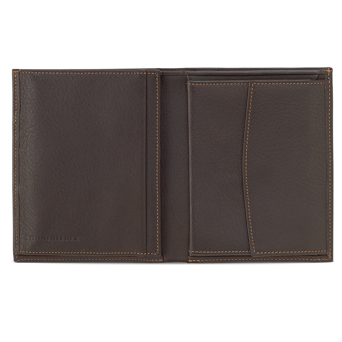 1 Geldscheinfach, 1 großes Münzfach, 4 Fächer für Personalausweis, Kfz-Papiere, Führerschein, 5 Kreditkartenfächer