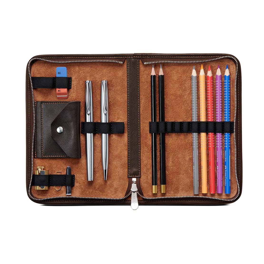 17 Schlaufen für 10 Stifte, 3 Füller, 1 Radierer, 1 Spitzer und 2 weitere Schlaufen · 1 Innentasche für Büroklammern, Geld und Kleinigkeiten · verschließbar durch 1 Reißverschluss · Artikel ohne Inhalt