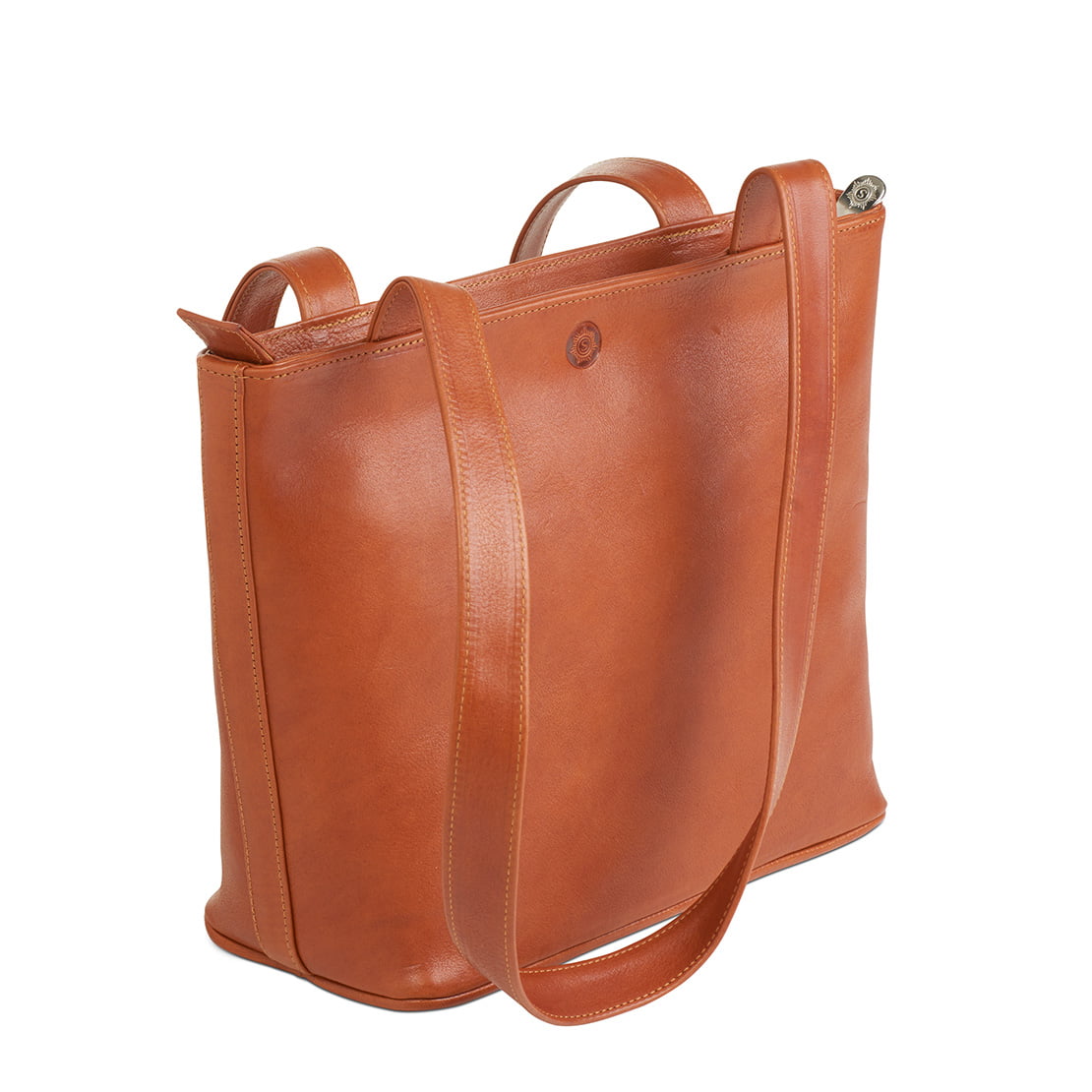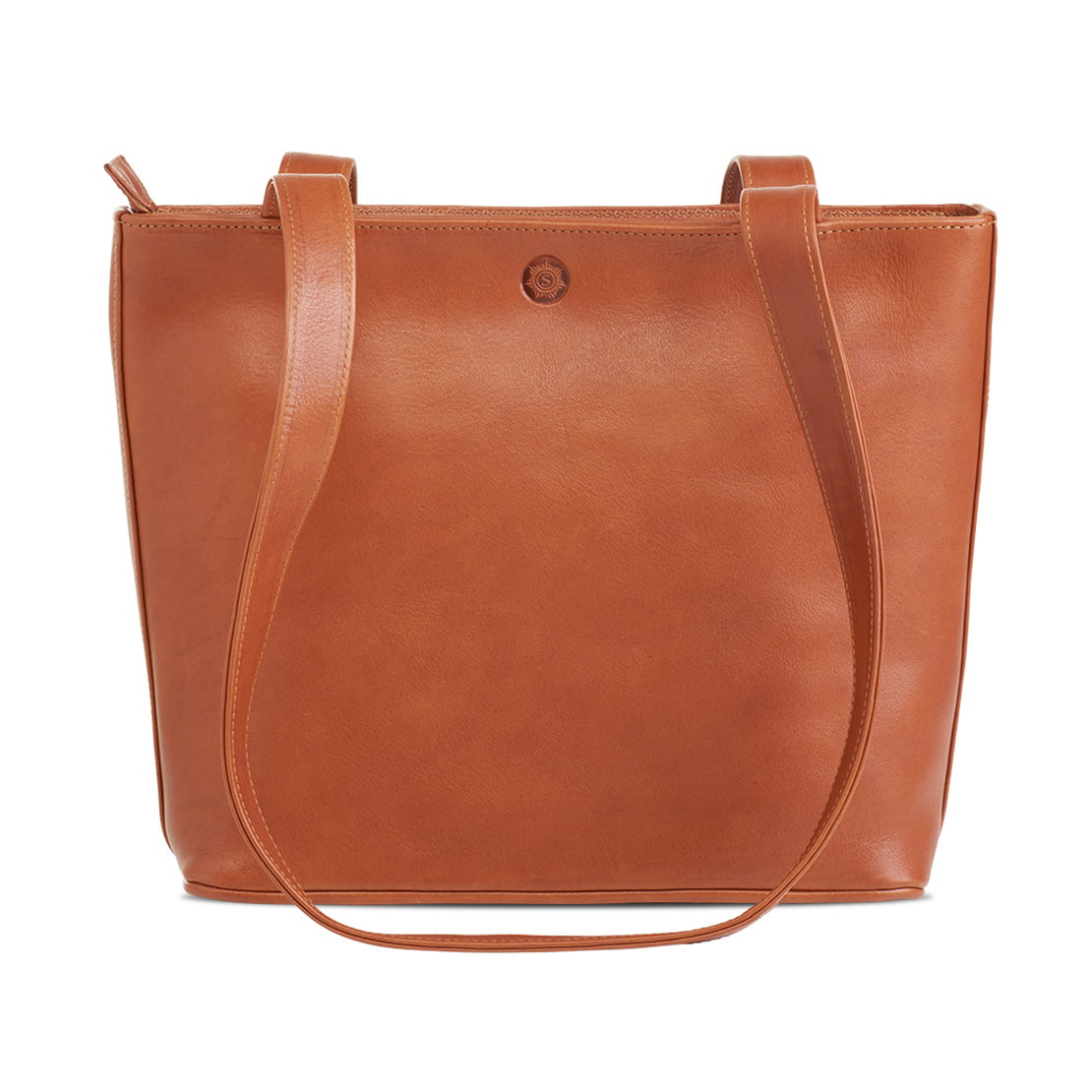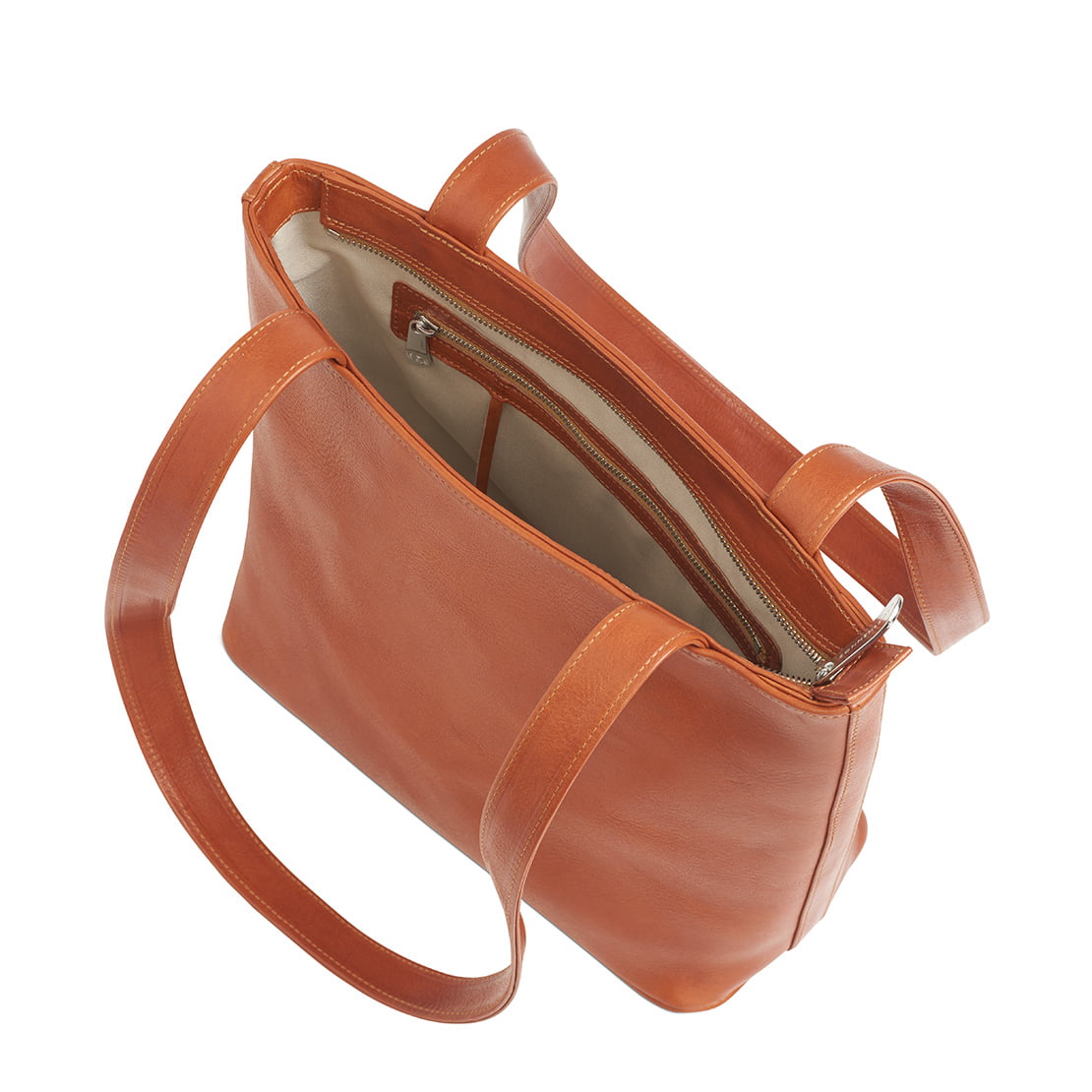 1 Hauptfach mit 1 zusätzlichen Reißverschlussfach ∙ 2 Steckfächer für Telefon, Stifte, Geldbörse ∙ 1 Schlüsselschlange aus Leder mit Metallkarabiner ∙ verschließbar durch 1 Reißverschluss ∙ Ledertrageriemen 2,5 cm breit ∙ geeignet für A5-Unterlagen