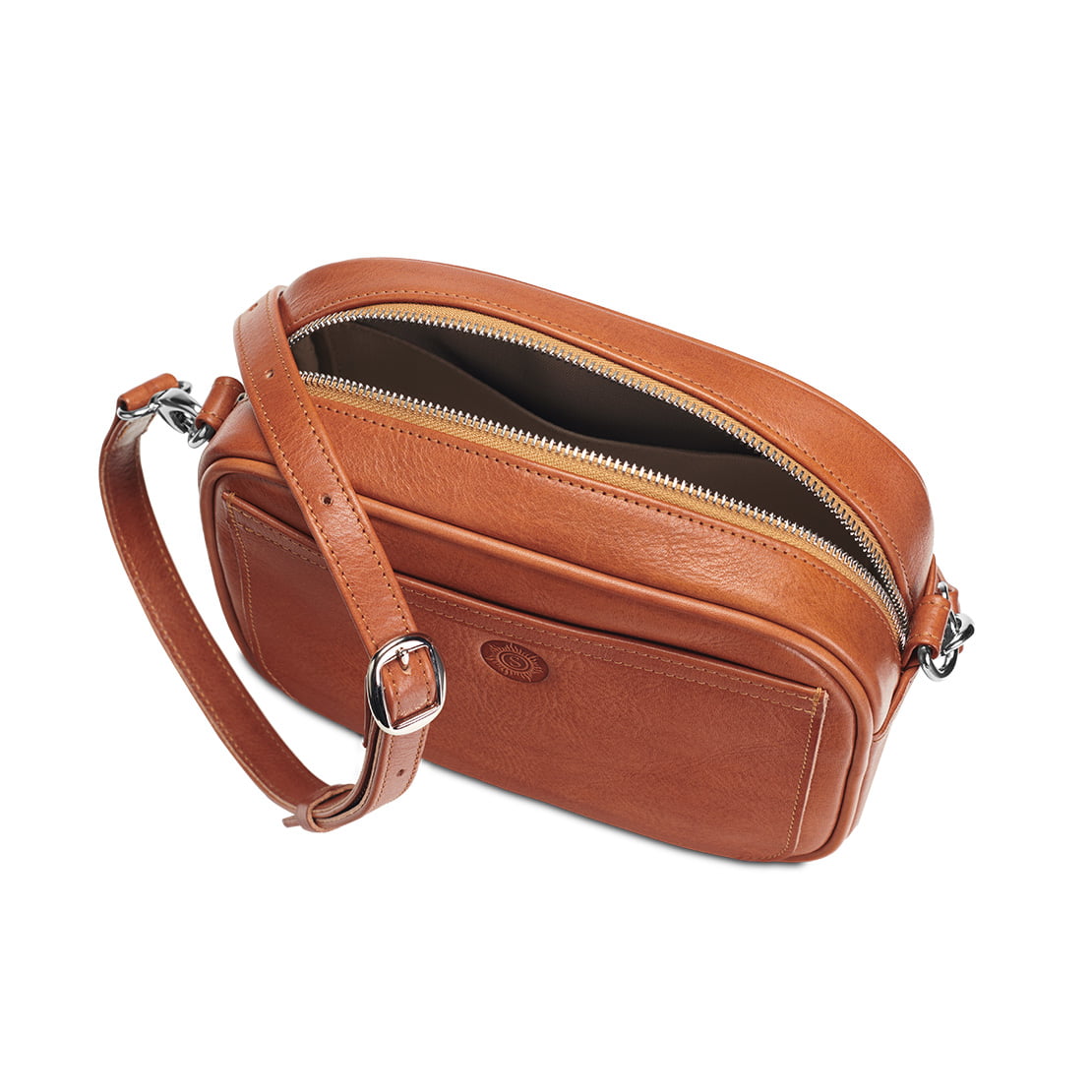 Süddeutsche Rindleder in Deutschland rein pflanzlich gegerbt, traditionelle Grubengerbung. Strapazierfähiges Köpergewebe, Polierte Premium Metall-Reißverschlüsse aus Deutschland, Beschläge aus Metall.