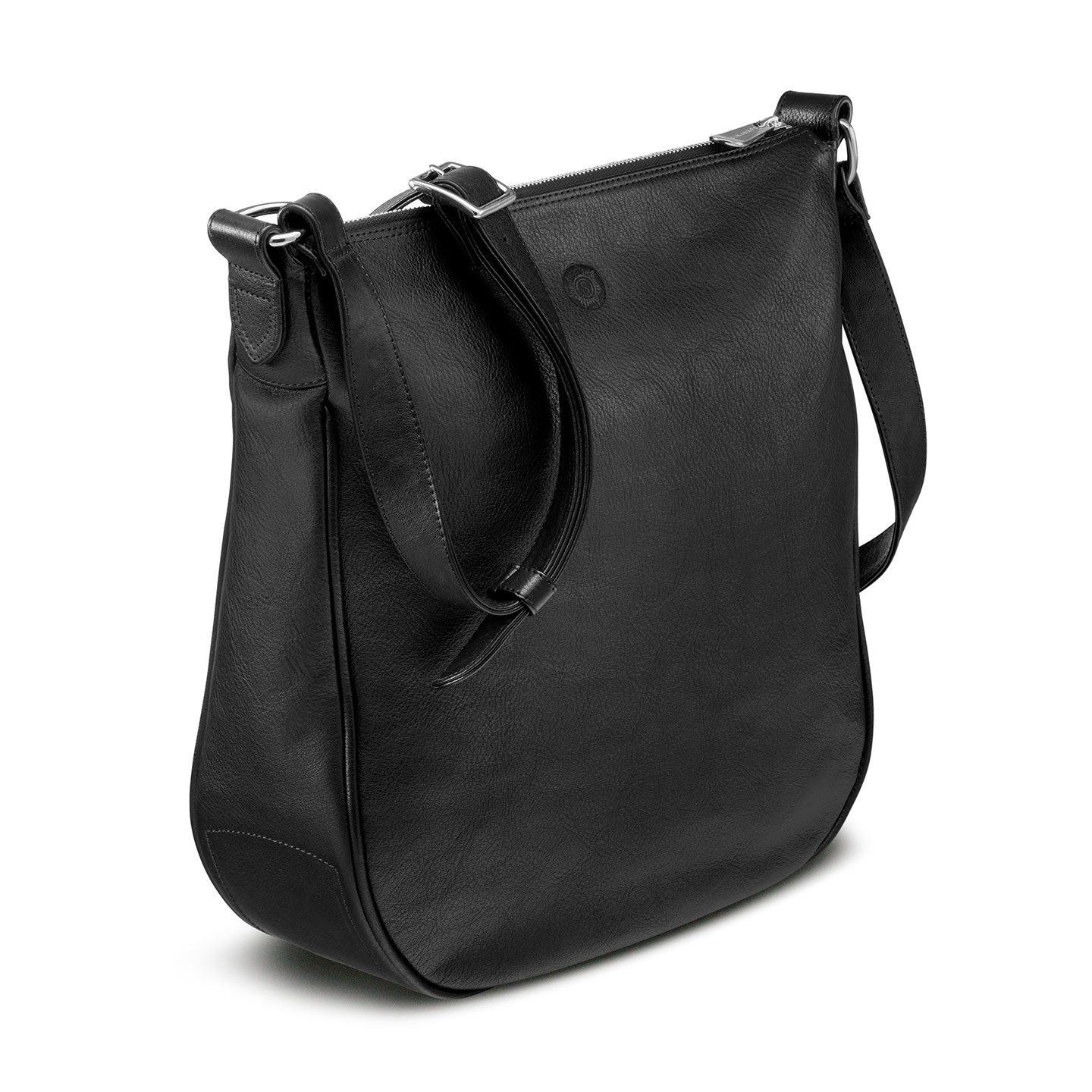 1 Hauptfach mit 1 zusätzlichen Reißverschlussfach, 2 Stiftelaschen · 2 Steckfächer für Telefon, Stifte, Geldbörse · 1 Schlüsselschlange aus Leder mit Metallkarabiner verschließbar durch 1 Reißverschluss· verstellbarer Ledertrageriemen, 2,5 cm breit · geeignet für A4-Unterlagen